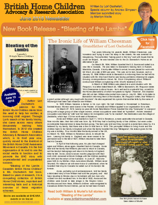 Photos included of these children whose stories are told in "Bleating of the Lambs - Canada's British Home Children"